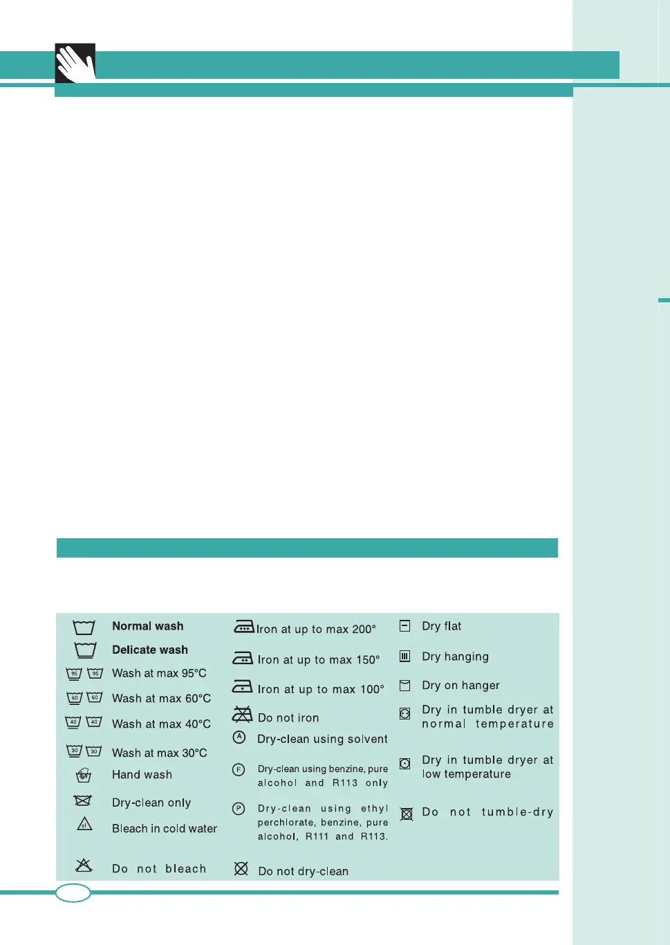 symbols on the manufacturer’s label. The table reported below will provide a useful guide to reading