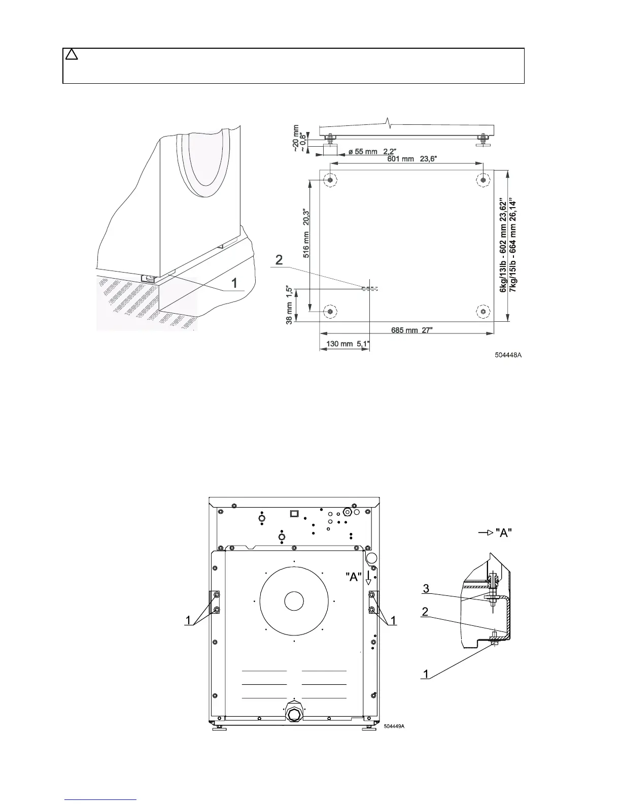 IF THE MACHINE IS LOCATED ON A HIGHER BASE FOR BETTER OPERATION, THE FRONT LEGS