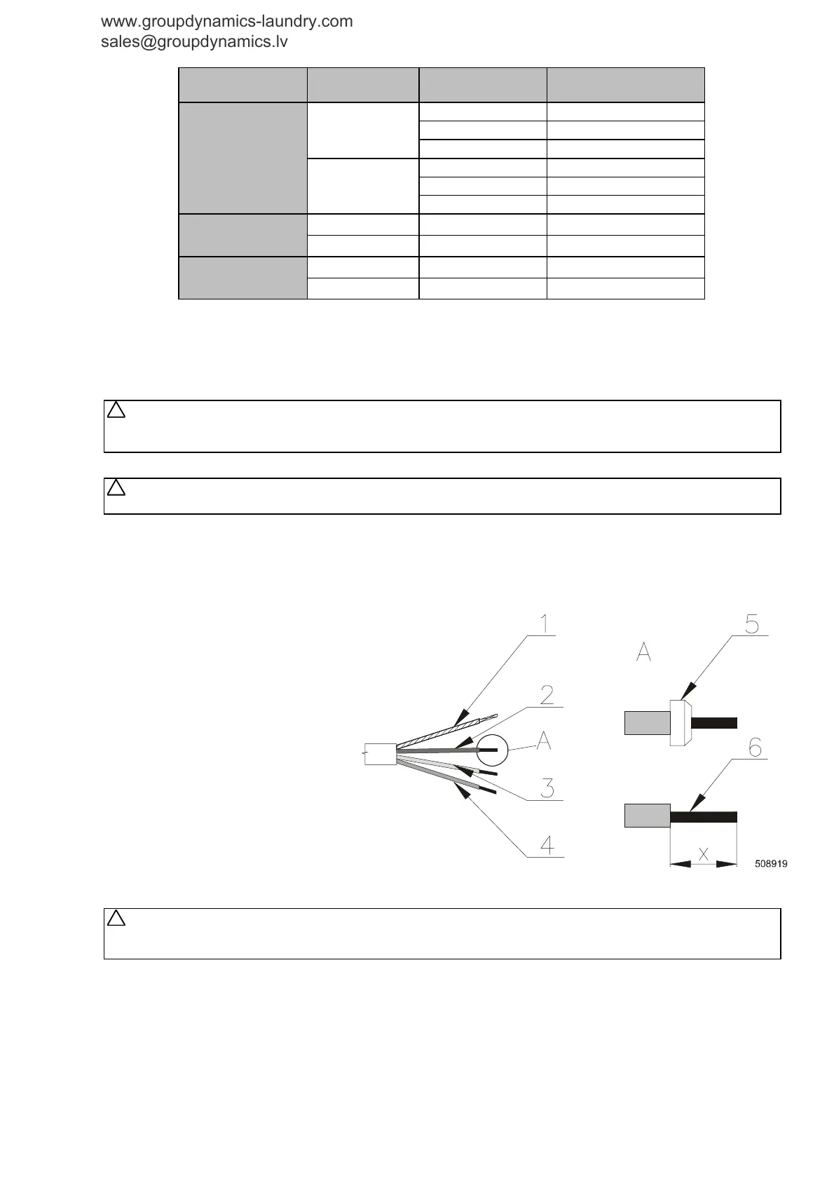 dimension X. When using a cord (stranded copper conductors), the individual cores can be stripped in the