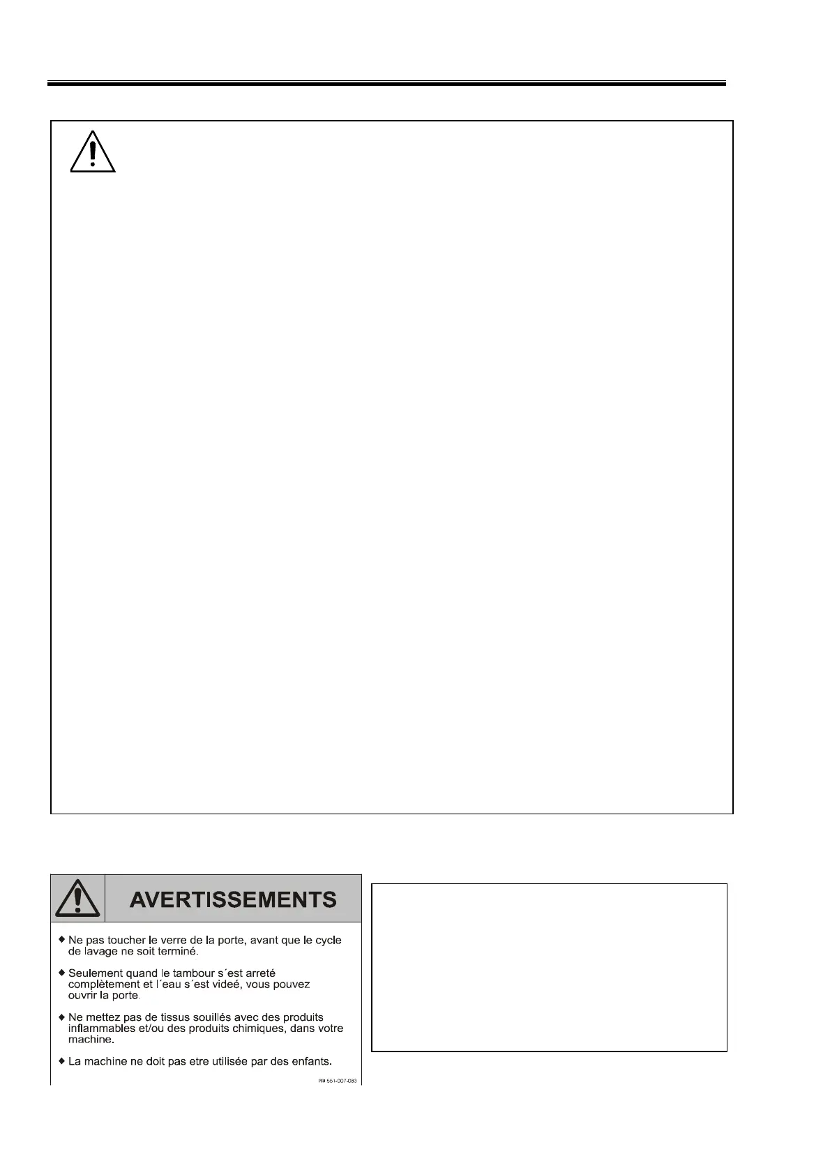 – Ne pas toucher l'hublot tant que le cycle de lavage n'est pas terminé. Ne pas ouvrir la porte de la machine