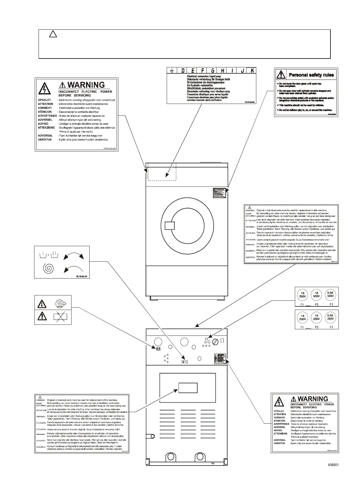 AN KRITISCHEN STELLEN DER MASCHINE SIND SICHERHEITSSCHILDER ANGEBRACHT. DIESE