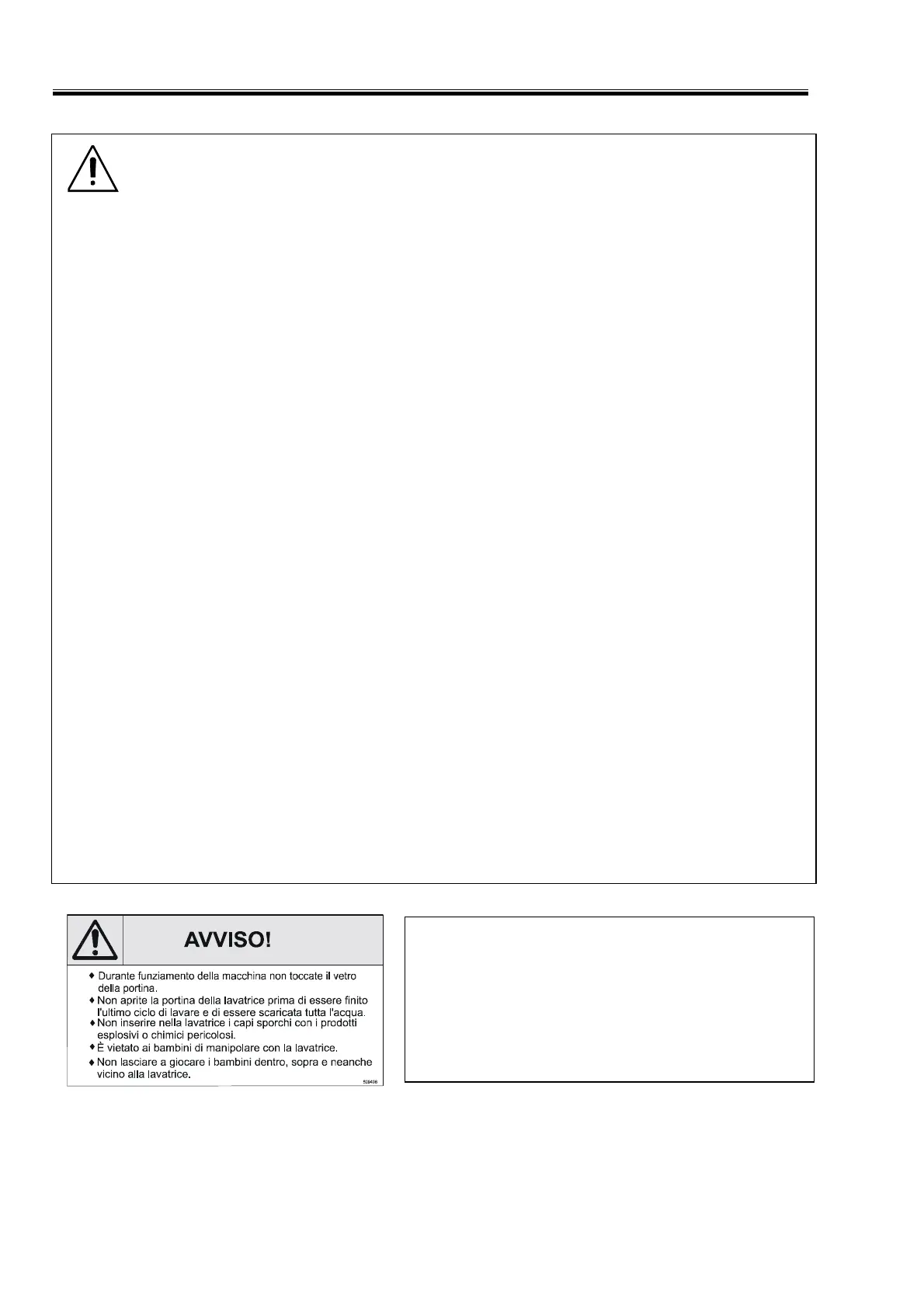 Durante funziamento della macchina non toccate il vetro della portina. Non aprite la portina della lavatrice
