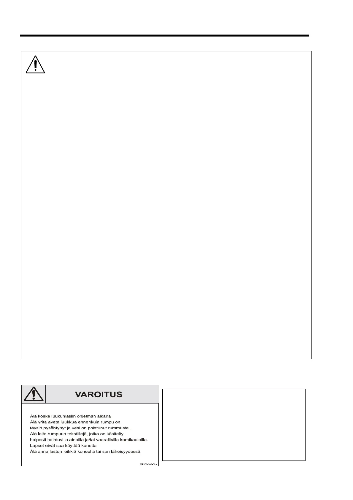 henkilöiden, koneen tai pestävän materiaalin vahingoittumisen, seuratkaa huolellisesti kaikkia varoituksia ja
