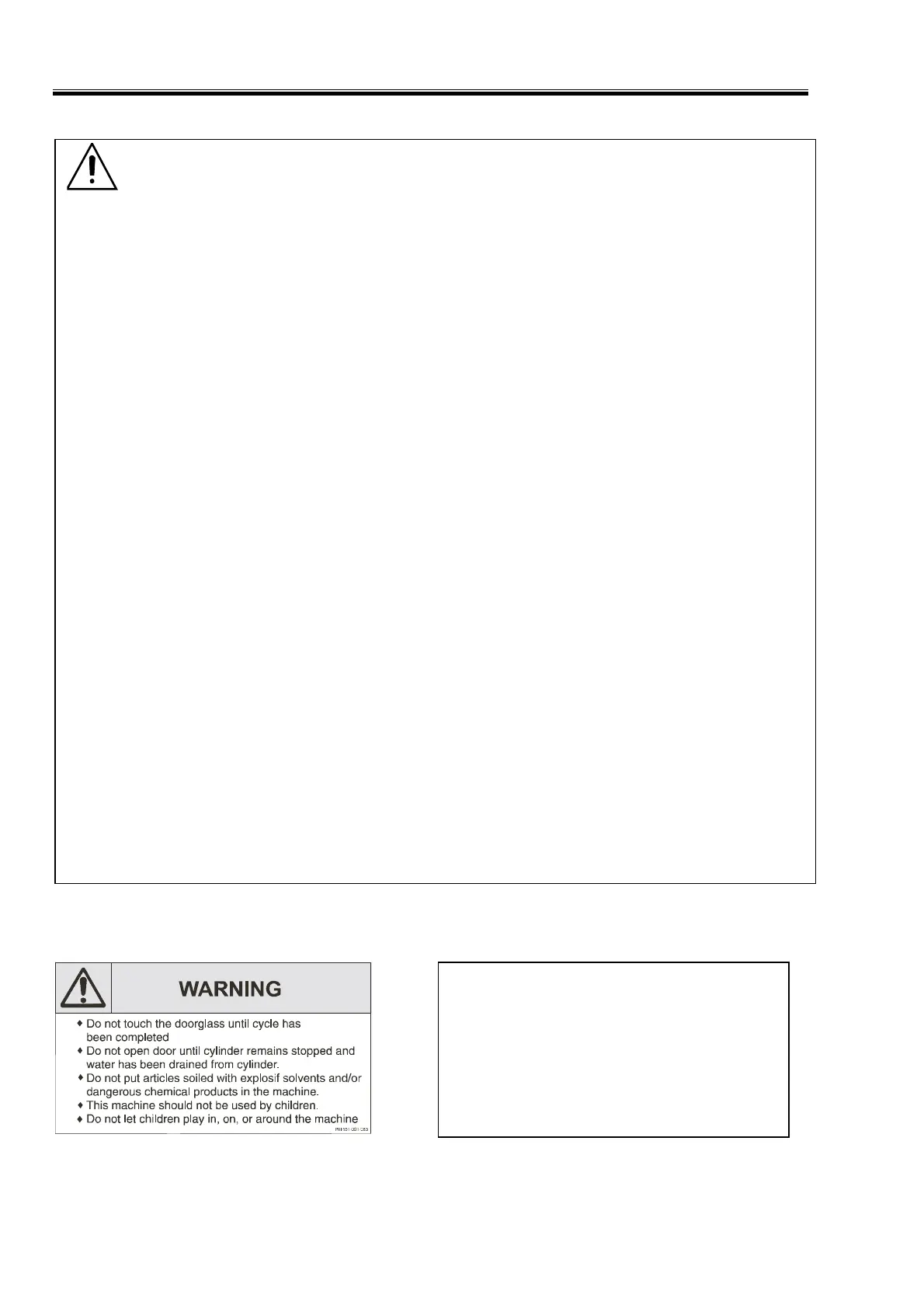 – Do not open door until cylinder remains stopped and water has been drained from cylinder.