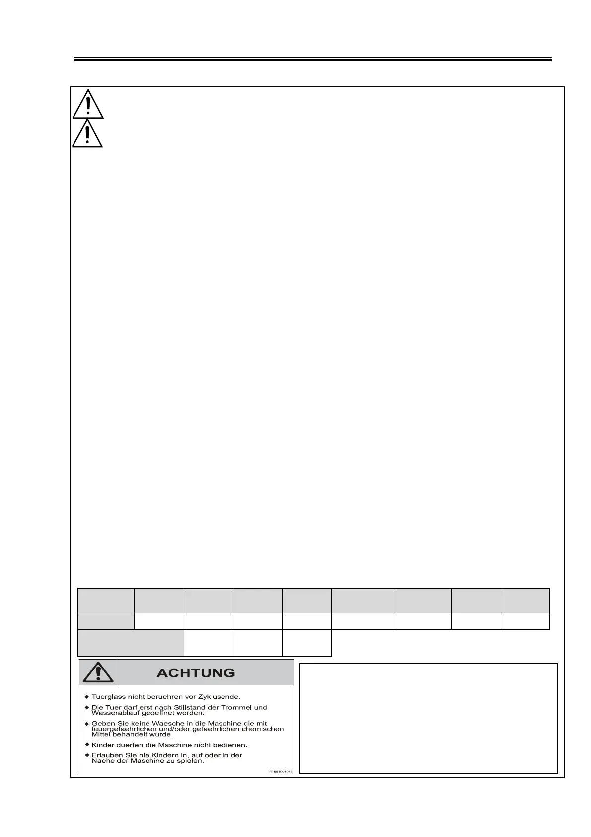 – Warnungssymbole von der Maschine nicht beseitigen. Anweisungen an Schildern und Symbolen einhalten, um