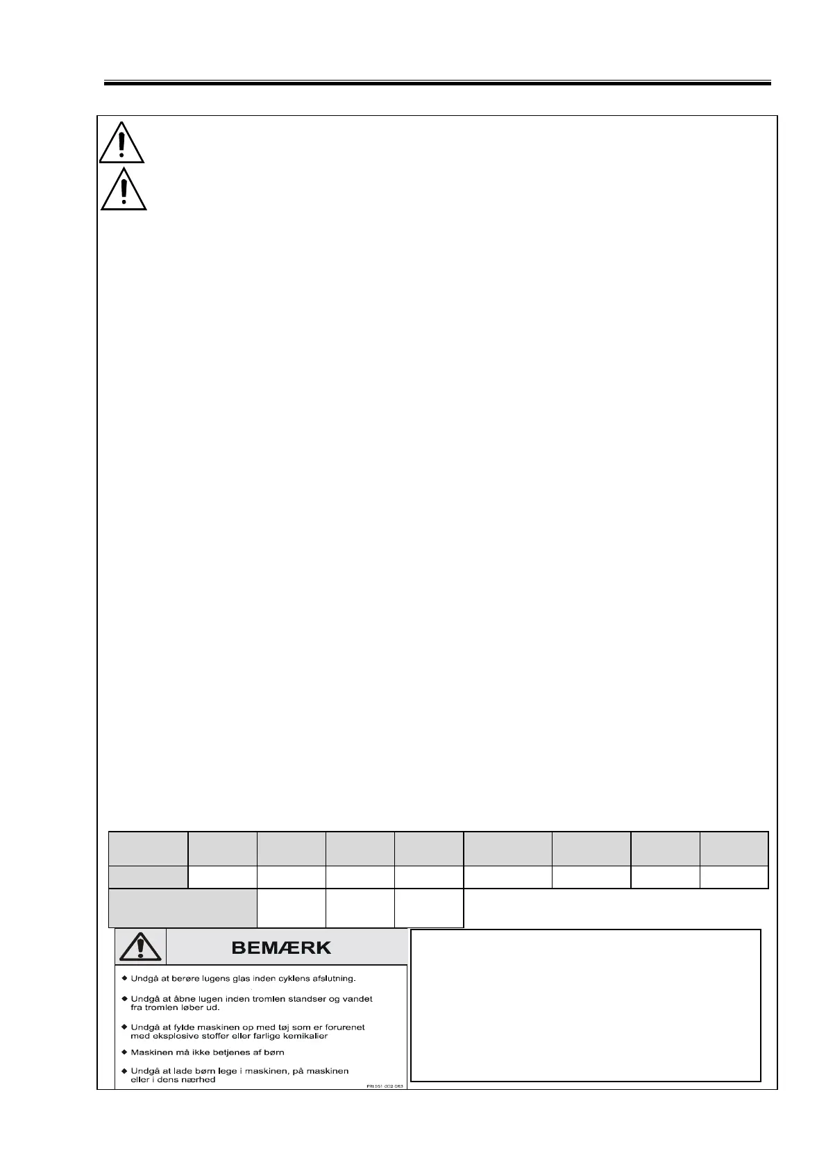 – Advarselssymboler må ikke fjernes fra maskinen. Anvisninger på etiketter og symboler skal overholdes for at undgå