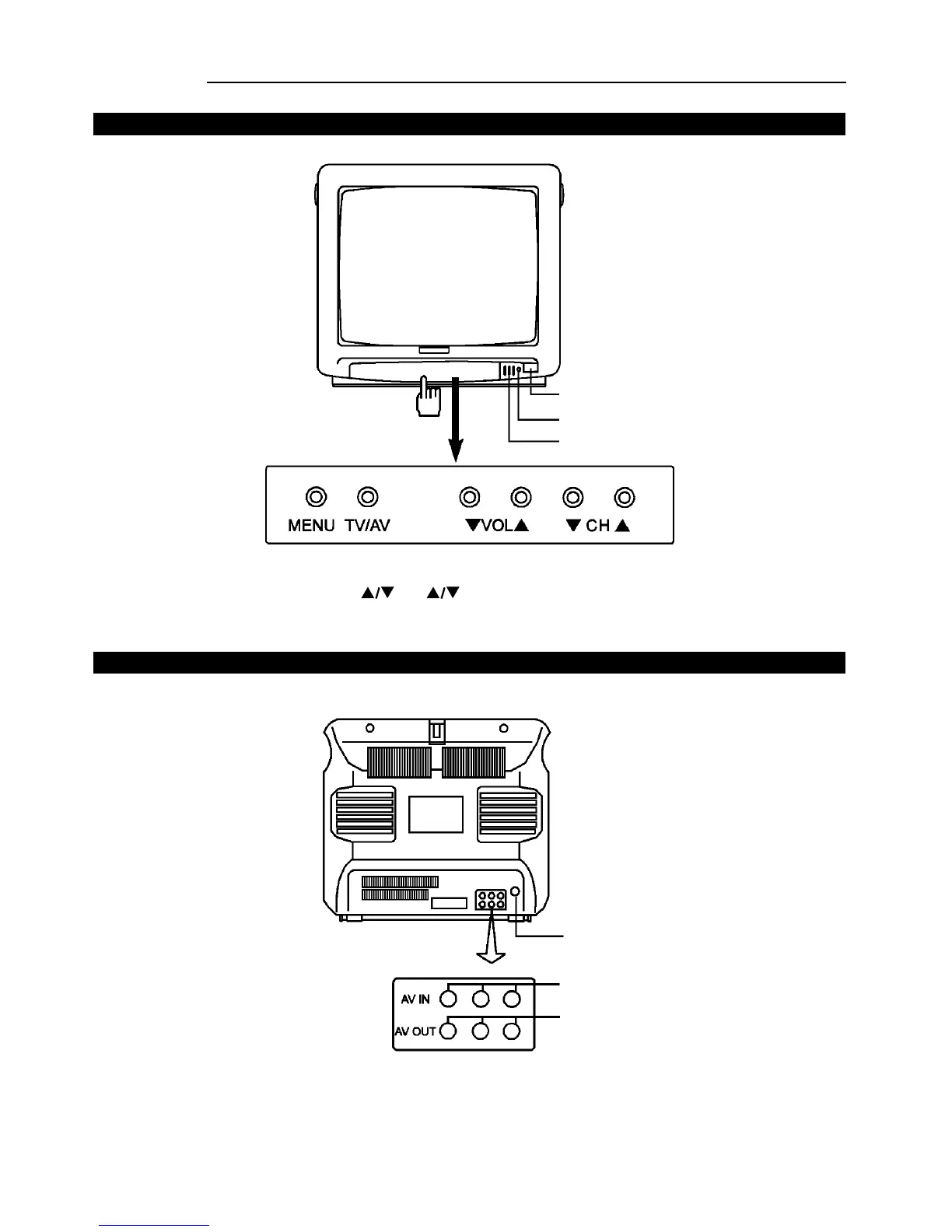 Note:* Functions of MENU, TV/AV, VOL , CH , are also provided to the