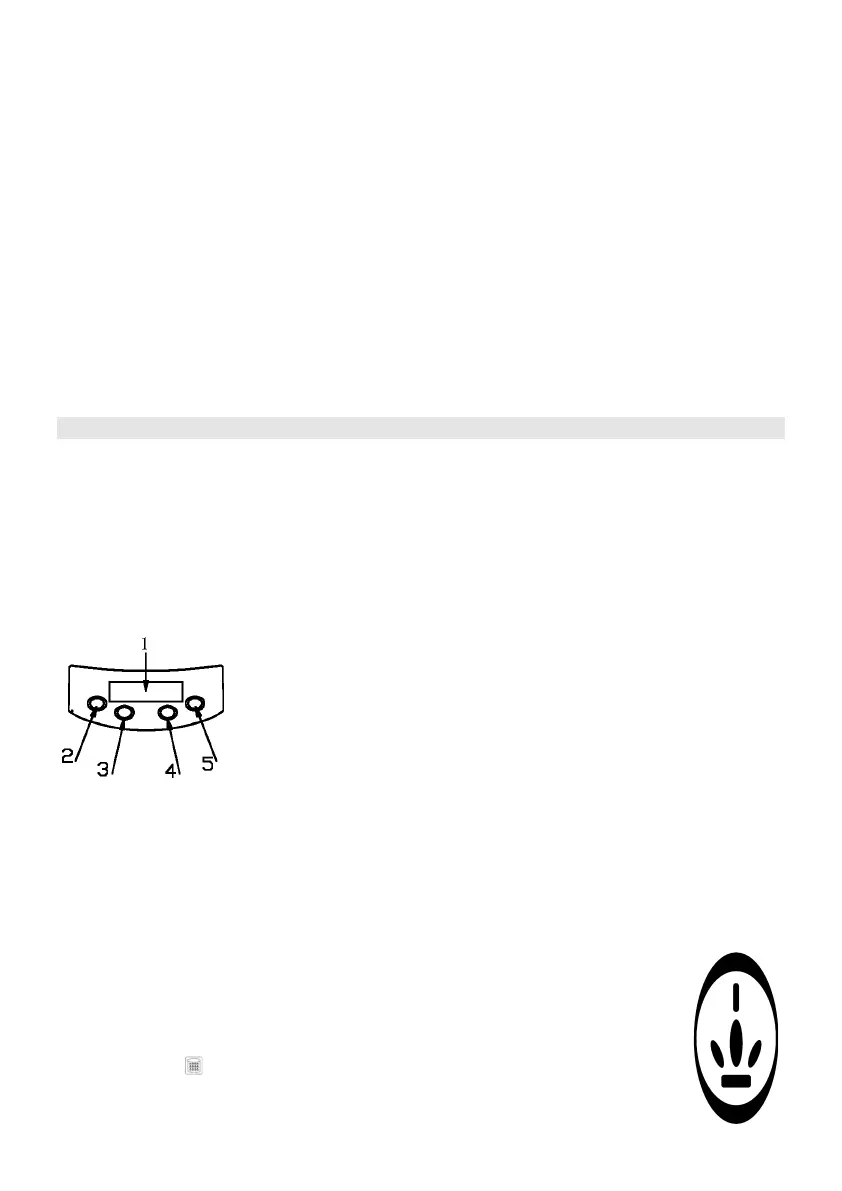 Laitteessa on selkeä näyttöruutu (1), virtapainike ON/OFF (2), asetuspainike SET (3), säätöpainike▲(4)