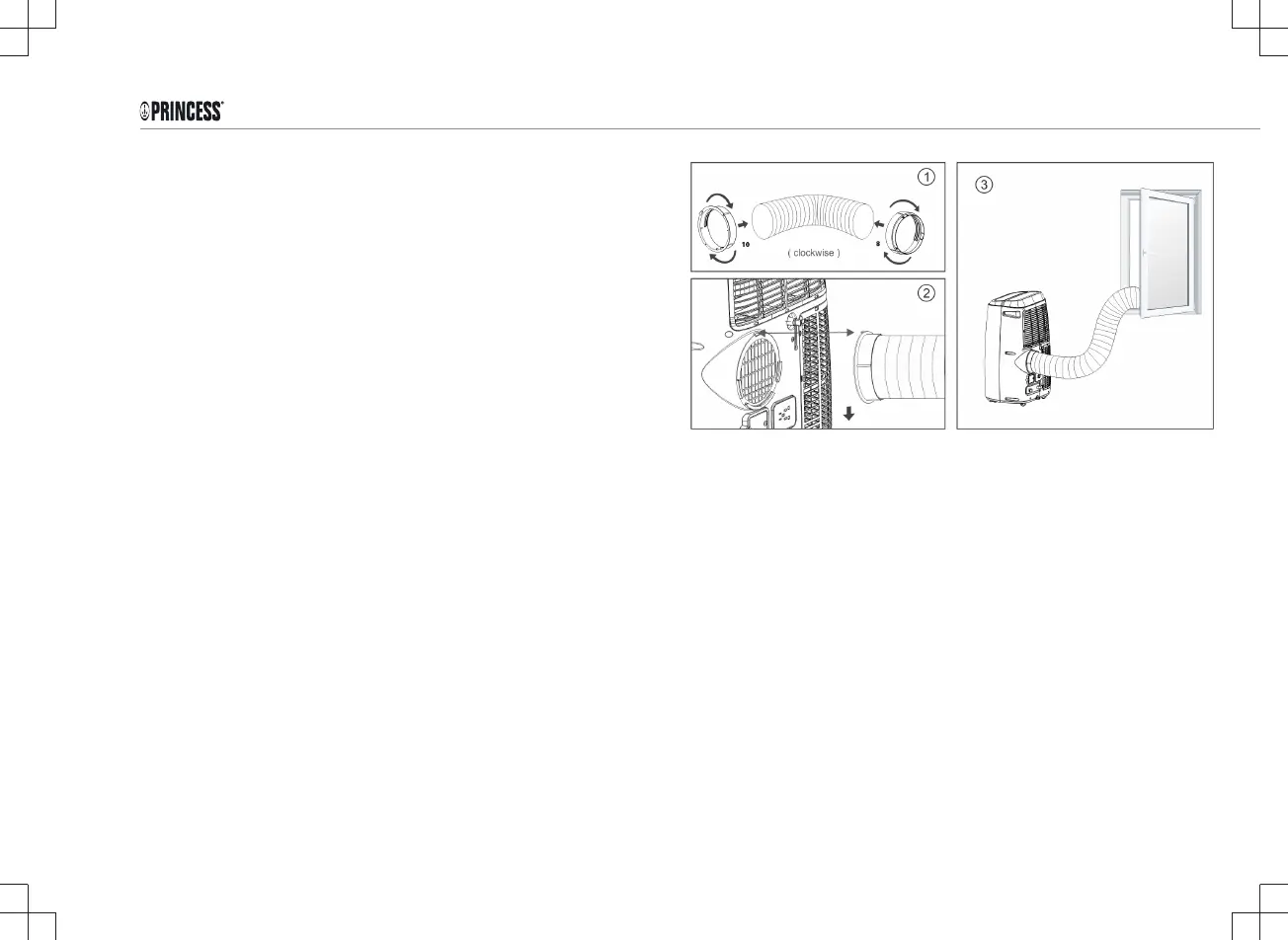 • Twist both ends of the hot-air exhaust hose(9) into the hose connector