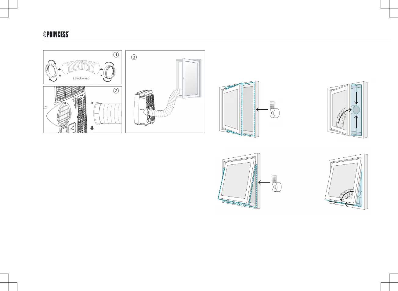 • Placez le tuyau du climatiseur dans l'ouverture du tissu. Fermez