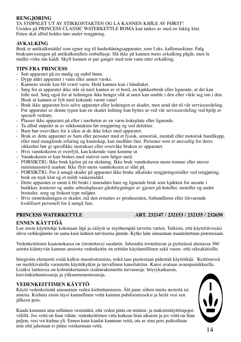 PRINCESS WATERKETTLE ART. 232147 / 232153 / 232155 / 232650