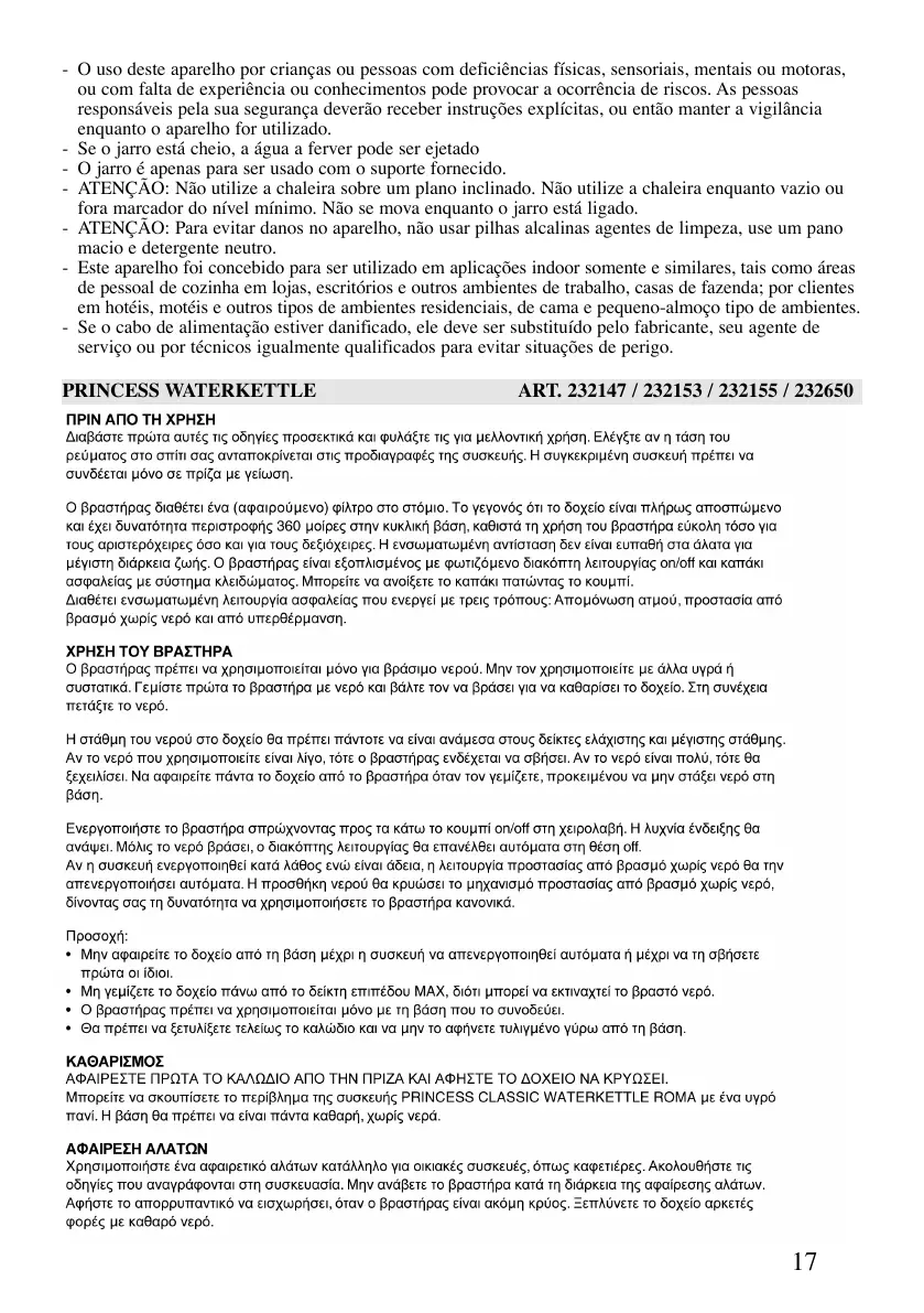 PRINCESS WATERKETTLE ART. 232147 / 232153 / 232155 / 232650