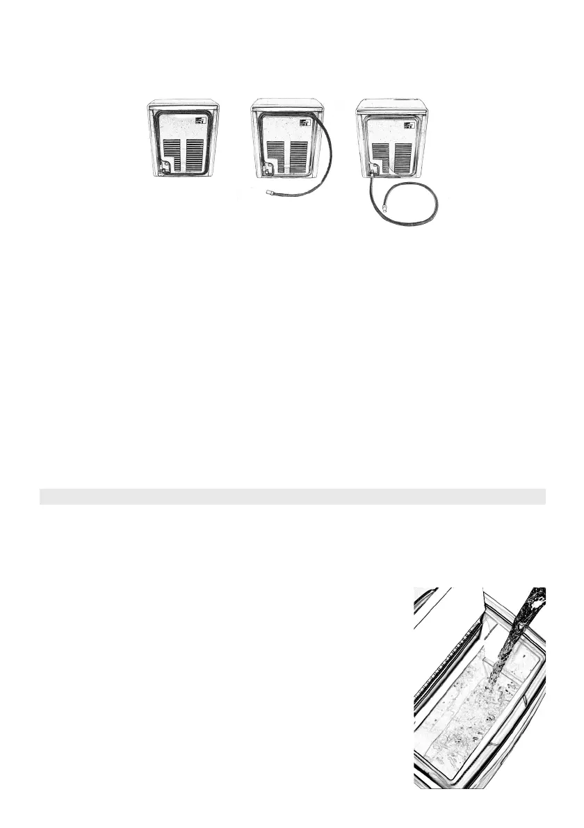 Aan de achterzijde van de ijsblokjesmachine bevindt zich een afvoerslang die gebruikt kan worden om het