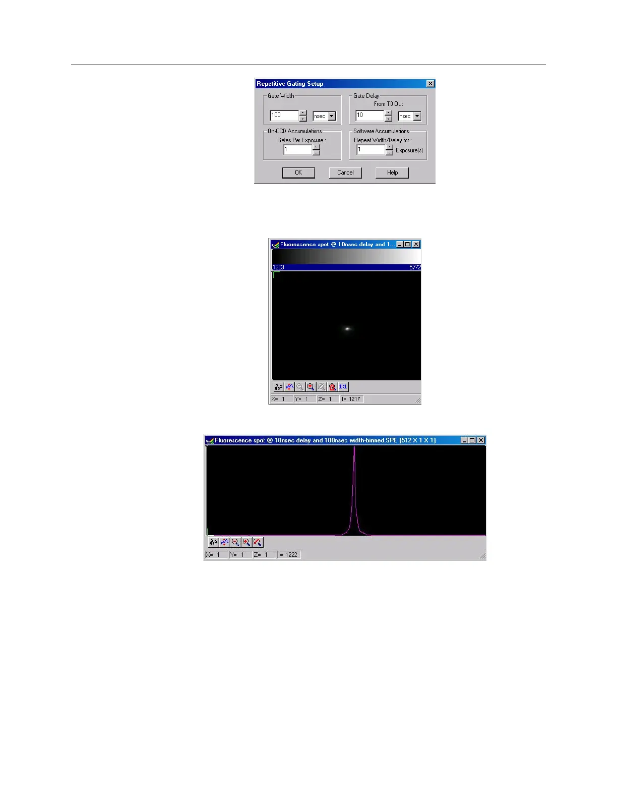 Figure 59. Single Shot Result: Fluorescence Spot, 100 ns Width, 10 ns Delay, Binned Vertically