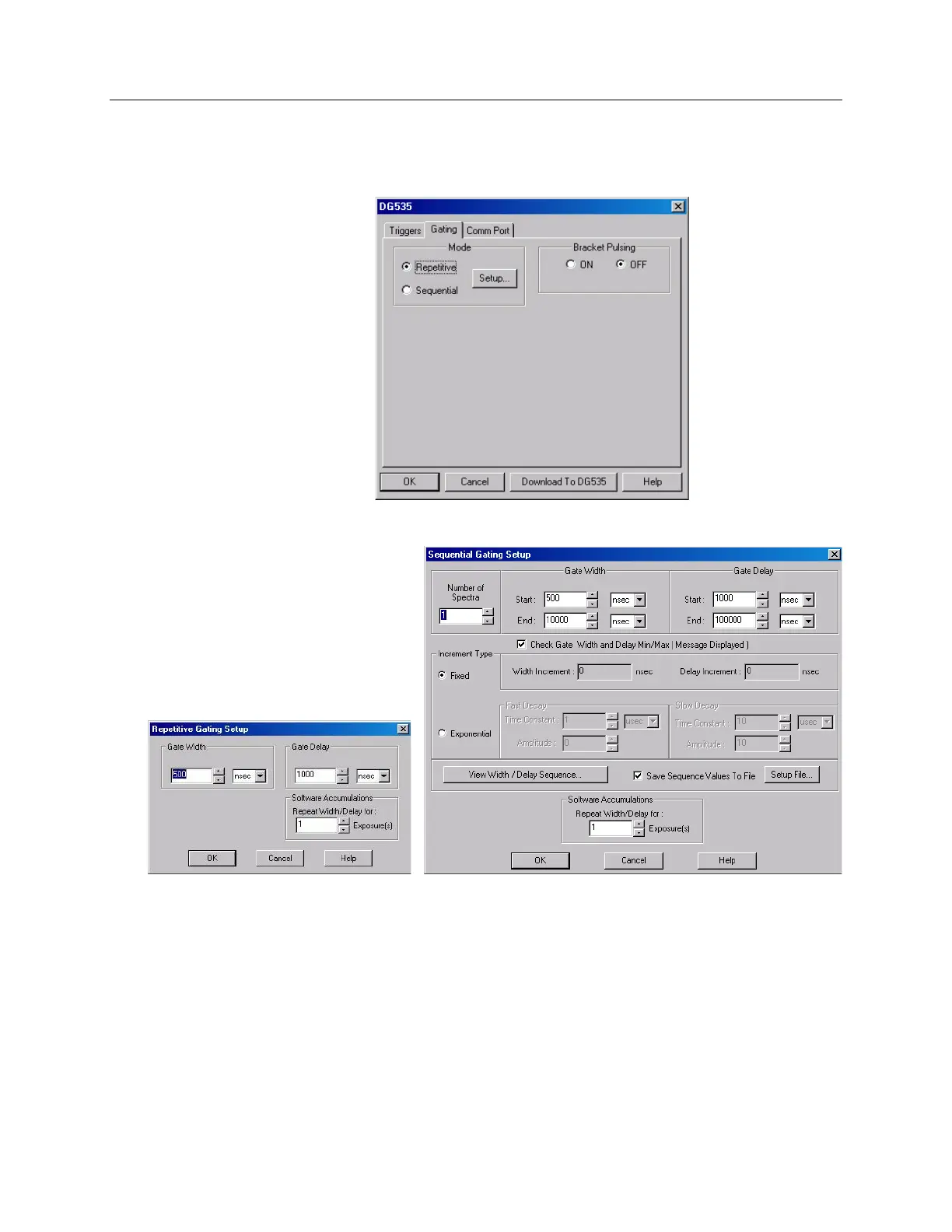 communications with the DG535 Pulser. Selections include 1 through 30 plus Demo,