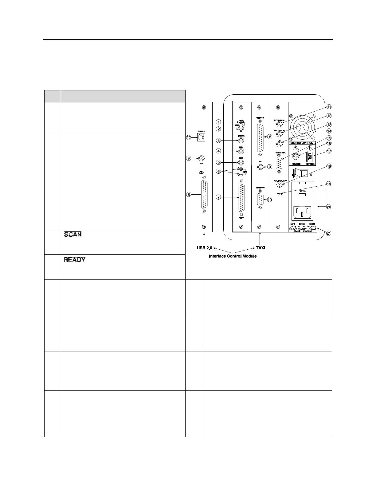 keyed to the accompanying figure. Depending on your system, either the TAXI or the USB 2.0 Interface
