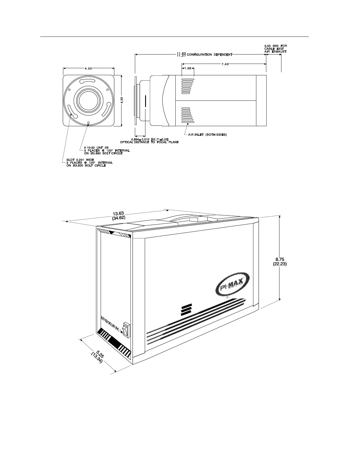 Figure 111. Outline Drawing: PI-MAX/PI-MAX2 with Spectroscopy-mount Adapter