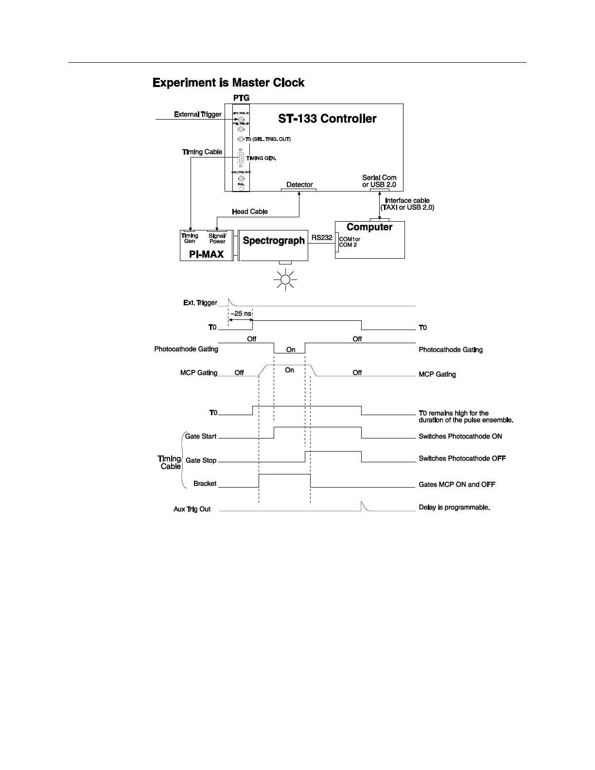Princeton Instruments PI-MAX System - Figure 42. Experiment Is Master Clock: Hardware Setup and Timing Diagram
