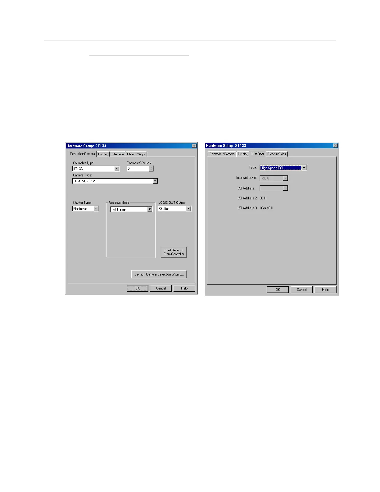 Figure 43. Hardware Setup: Controller/ Camera and Interface tab pages
