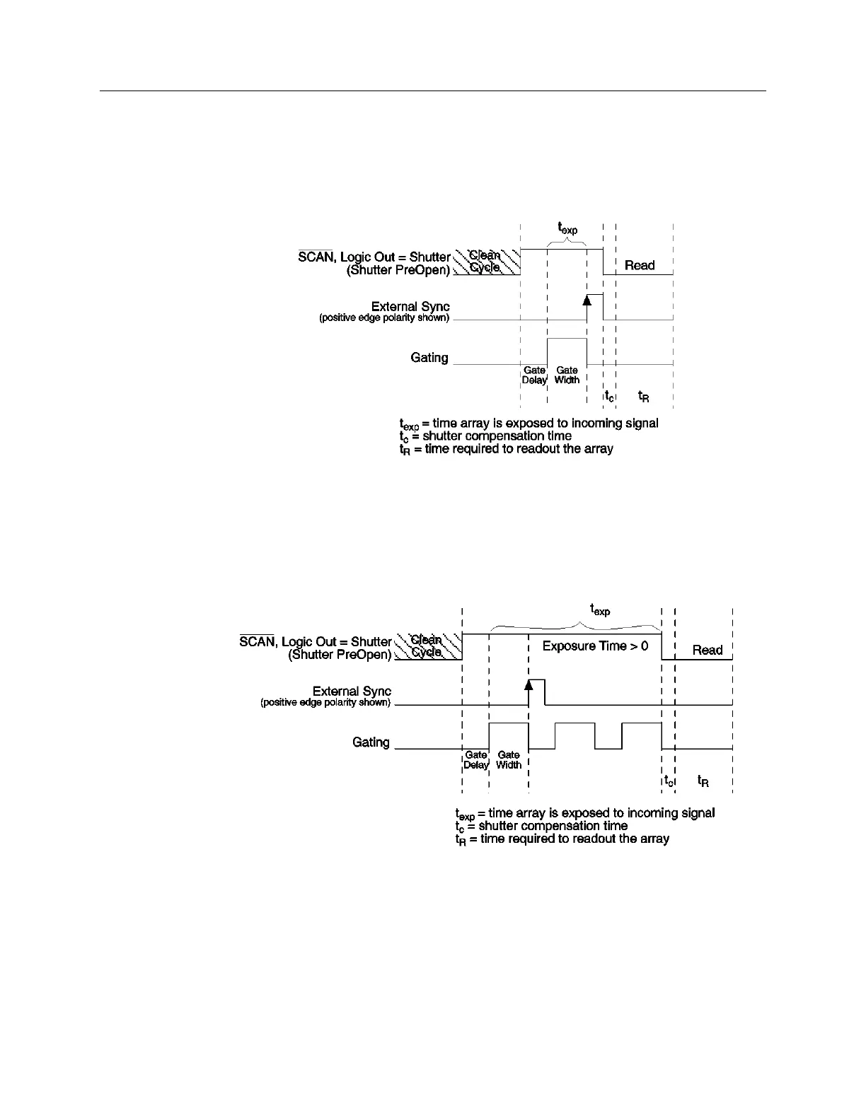The timing diagrams below show the sequence of events for a 0 second exposure time
