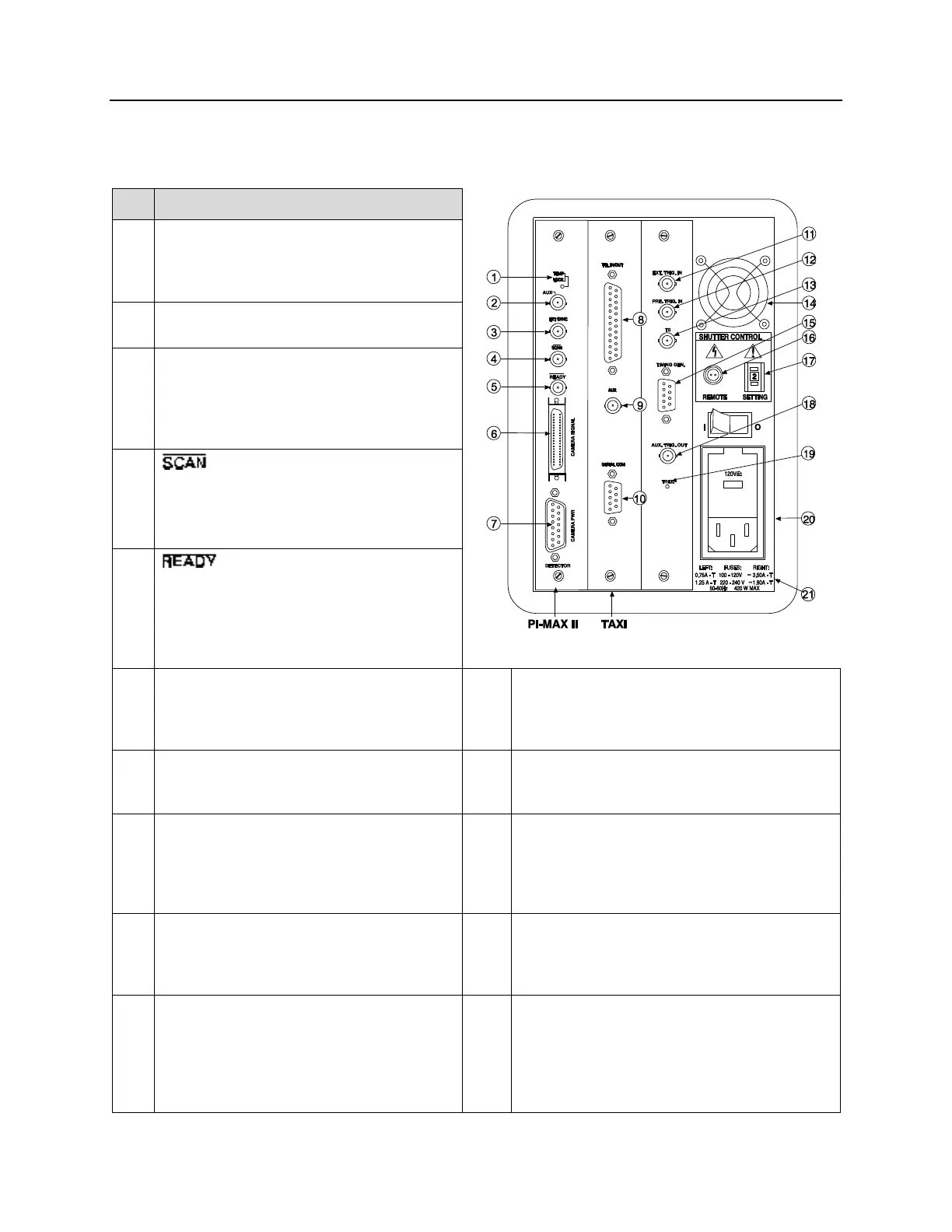 PI-MAX2 Controller Rear Panel Features: The descriptions of the rear panel connectors are keyed to