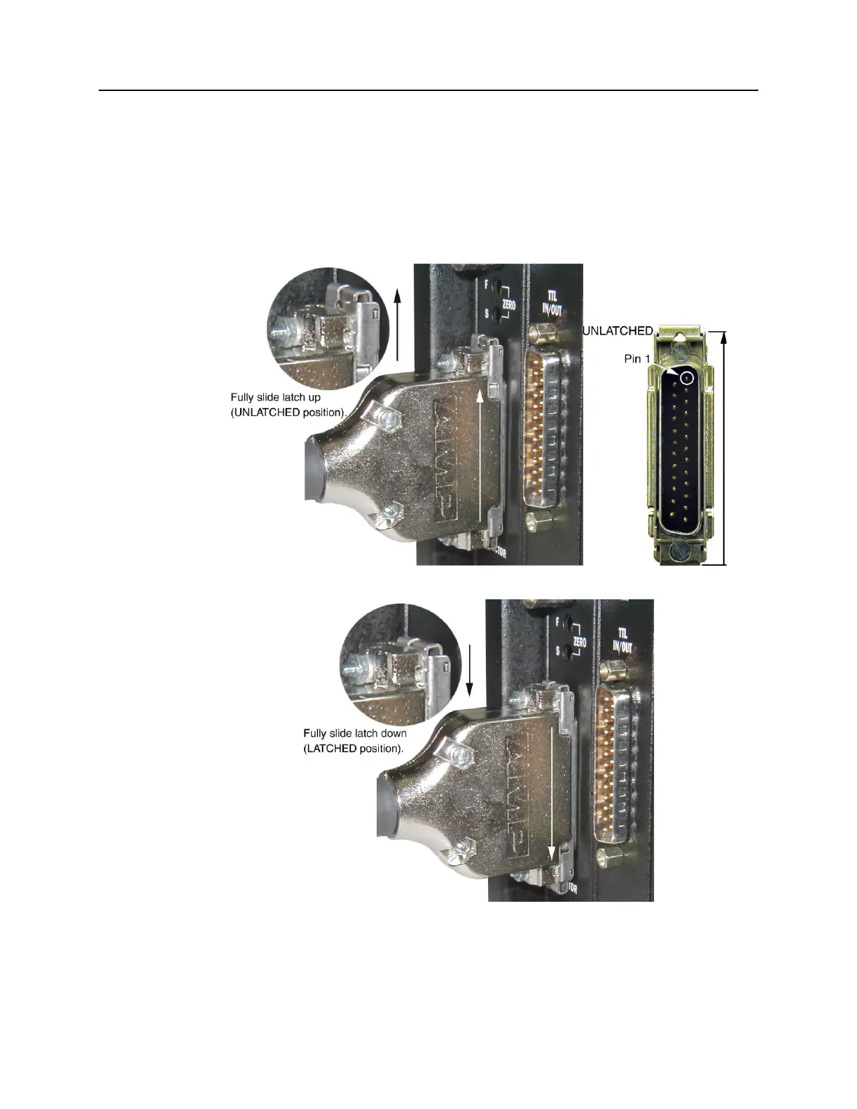 1. Before trying to plug in the cable, slide the latch up (toward Pin 1). Then, plug the