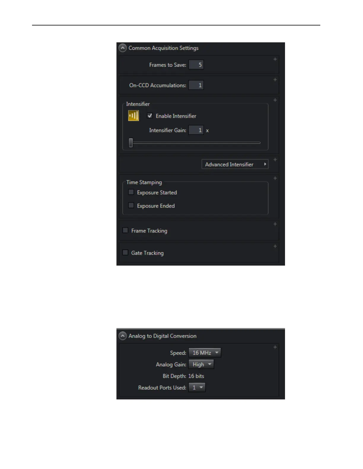 Princeton Instruments PI-MAX4 - Figure 6-10: Typical Common Acquisition Settings Expander; Figure 6-11: Typical Analog to Digital Conversion Expander
