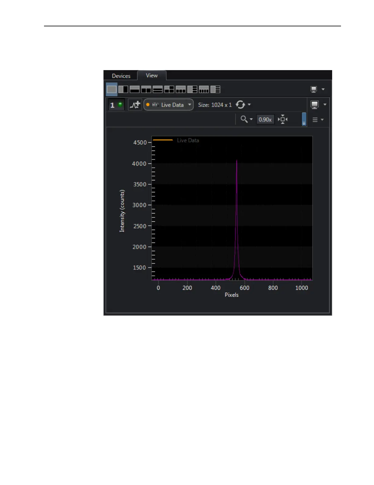 Princeton Instruments PI-MAX4 - Figure 6-25: Single Shot Result: Fluorescence Spot, Width = 100 Ns