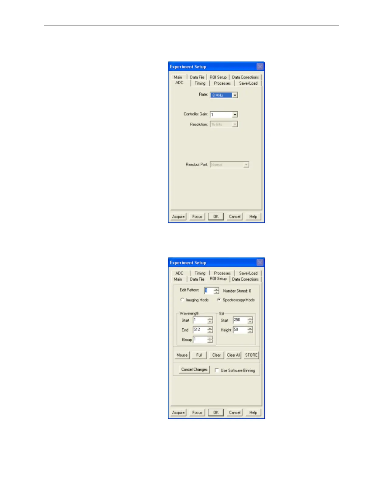 Figure 7-11: Typical Experiment Setup Dialog: ROI Tab
