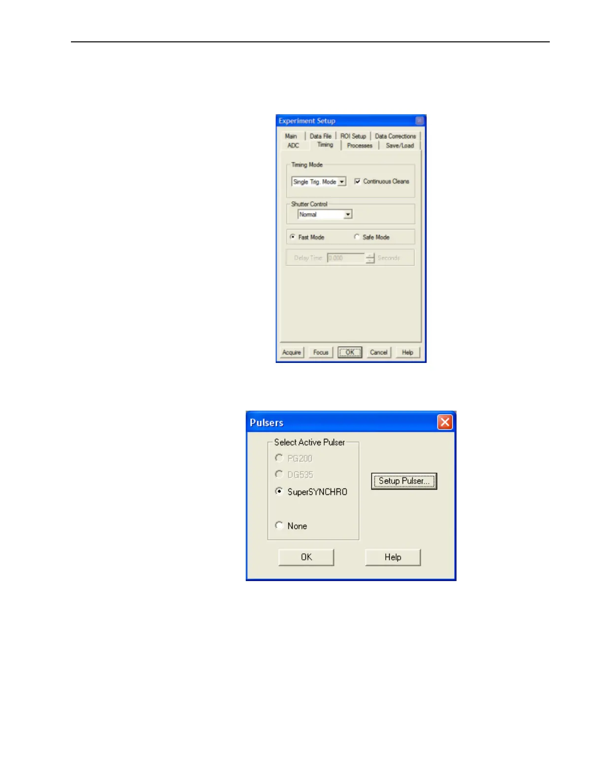 Select SuperSYNCHRO, and click the Setup Pulser button to display the