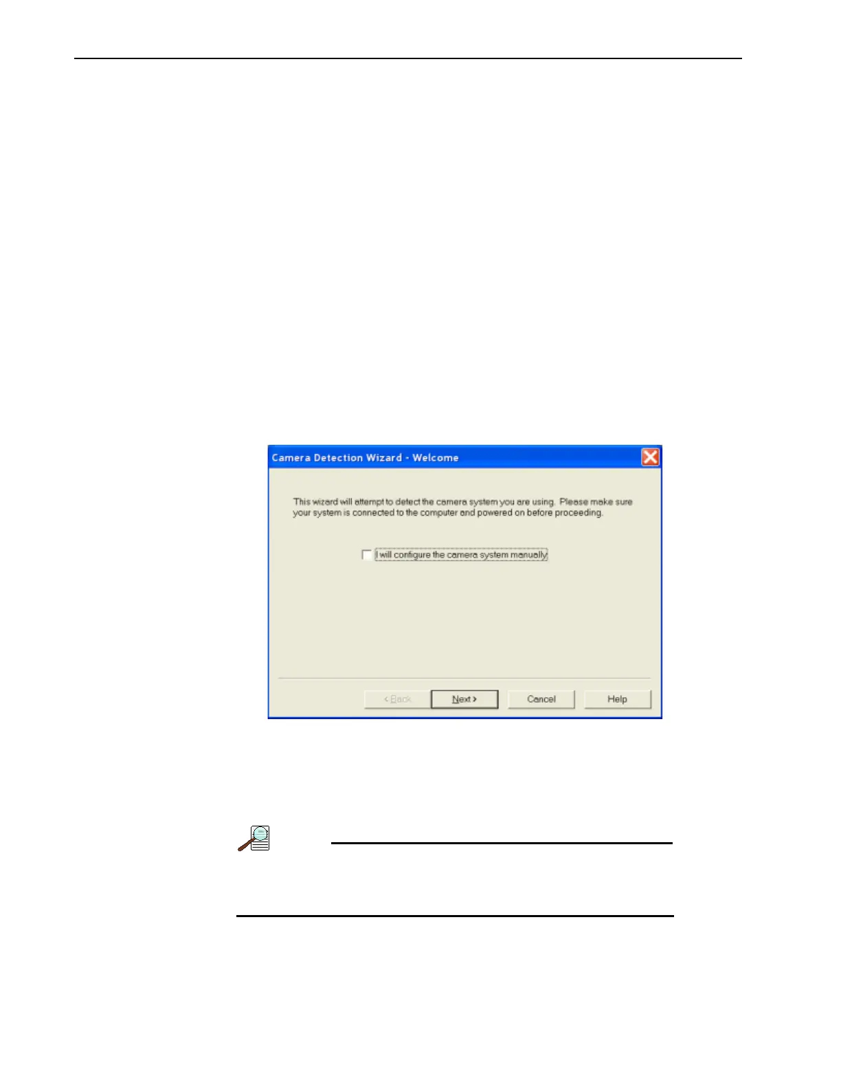 • The Camera Detection Wizard will automatically run if this is the first time a