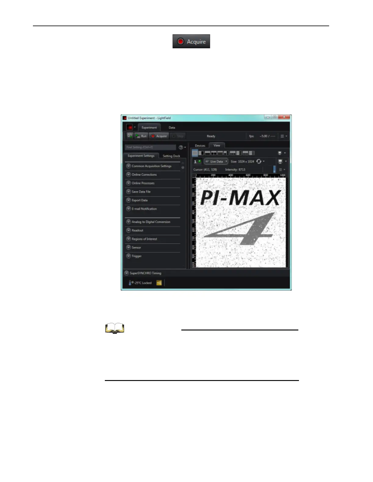 • If an image is displayed, PI-MAX4 is able to acquire an image.