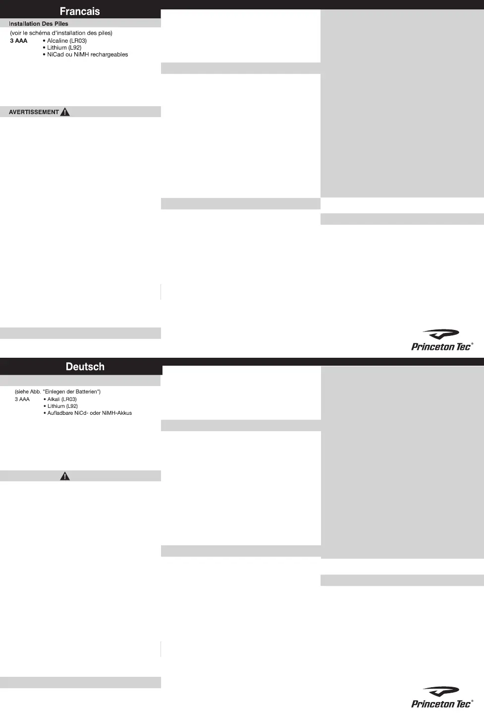 Princeton Tec se réserve le droit de modifier les