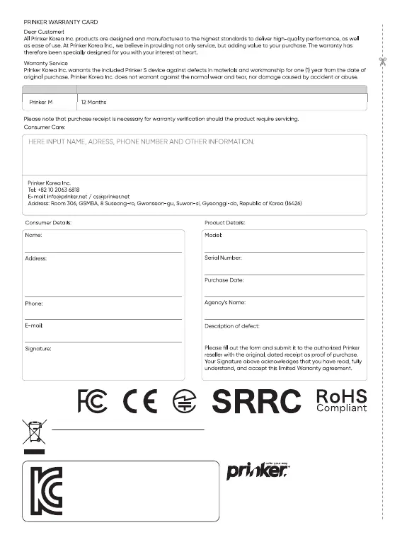 In the European Union, this label icon indicates that this product should not be disposed with the household waste. Prinker