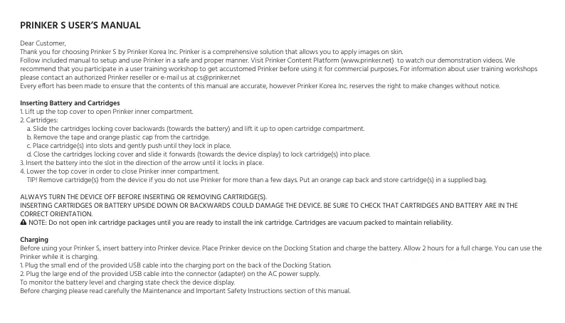 Thank you for choosing Prinker S by Prinker Korea Inc. Prinker is a comprehensive solution that allows you to apply images on skin.