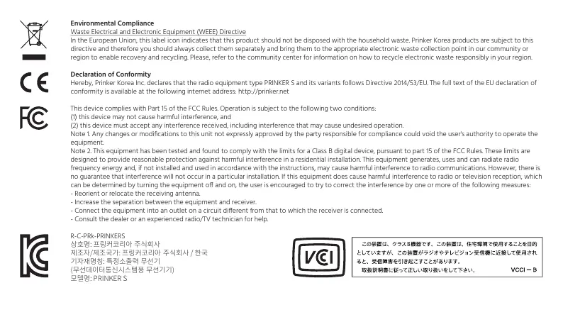 Hereby, Prinker Korea Inc. declares that the radio equipment type PRINKER S and its variants follows Directive 2014/53/EU. The full text of the EU declaration of