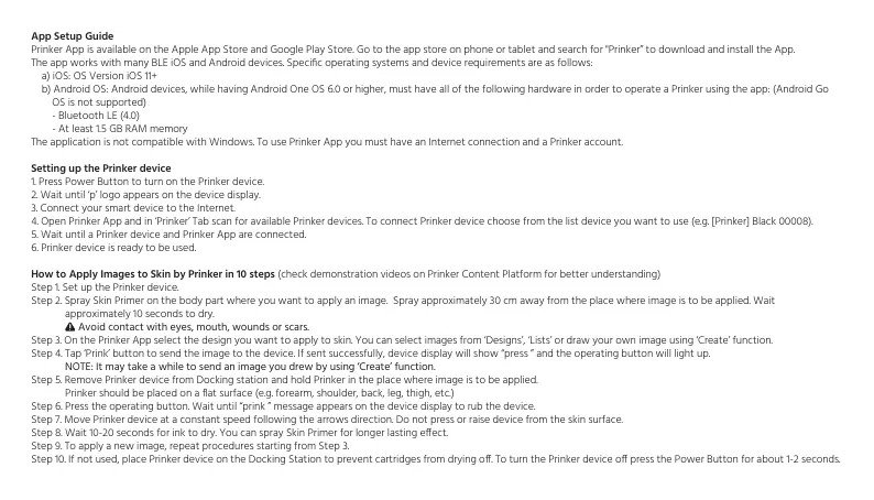 Step 10. If not used, place Prinker device on the Docking Station to prevent cartridges from drying o. To turn the Prinker device o press the Power Button for about 1-2 seconds.