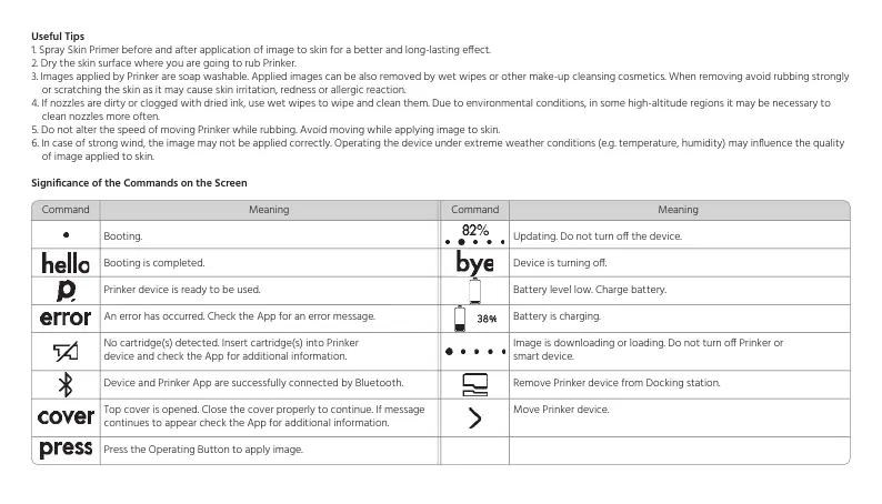 5. Do not alter the speed of moving Prinker while rubbing. Avoid moving while applying image to skin.