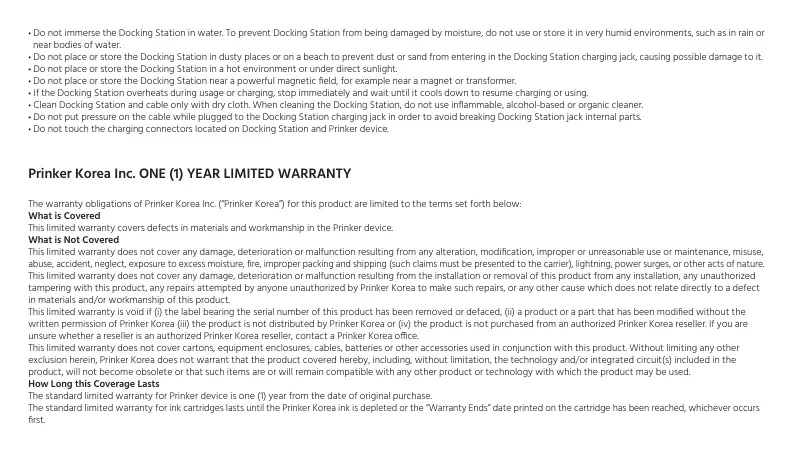 The warranty obligations of Prinker Korea Inc. (“Prinker Korea”) for this product are limited to the terms set forth below: