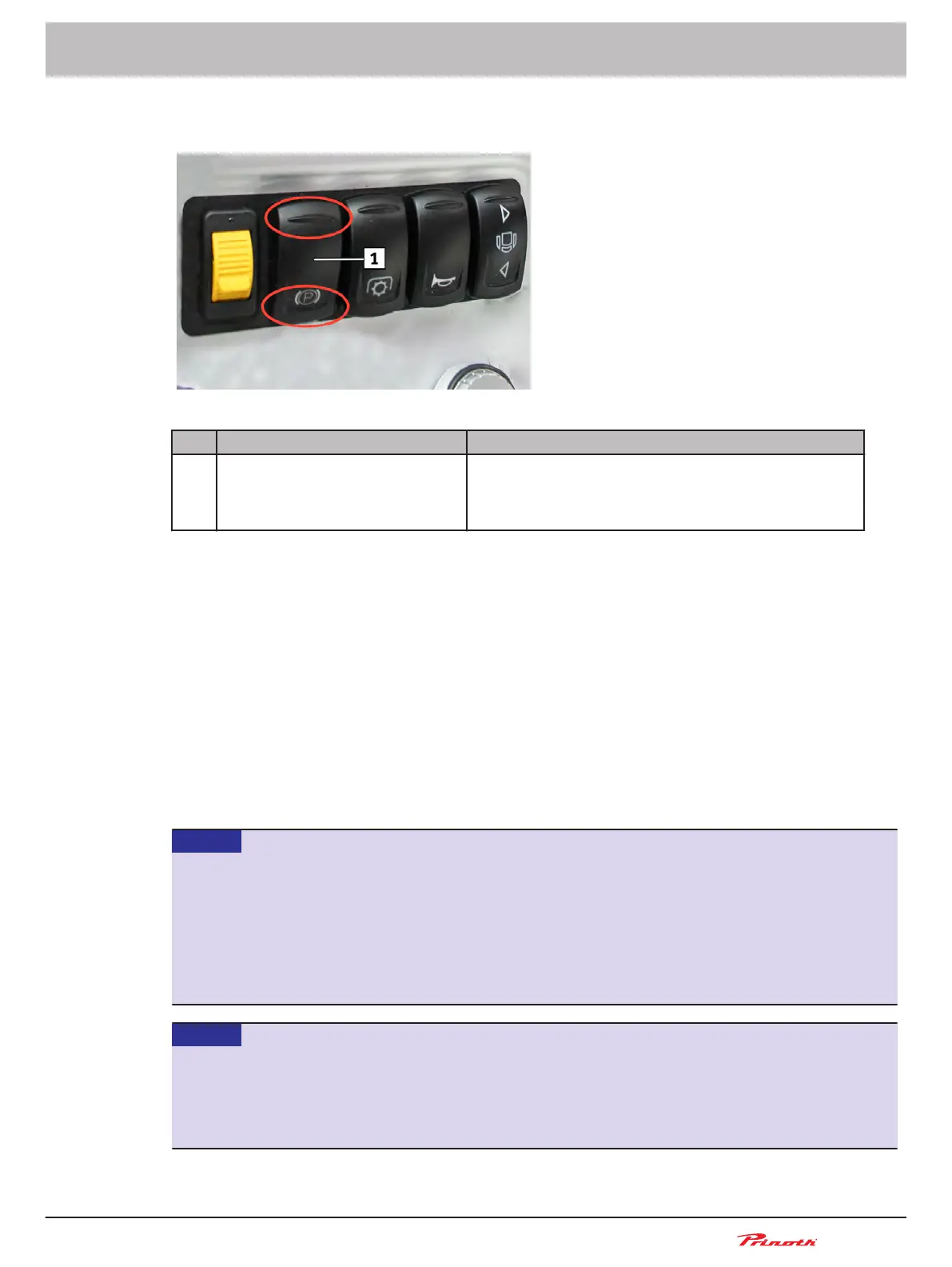 1 S62 Rocker switch: Parking brake Use the rocker switch (1) to activate the parking brake: