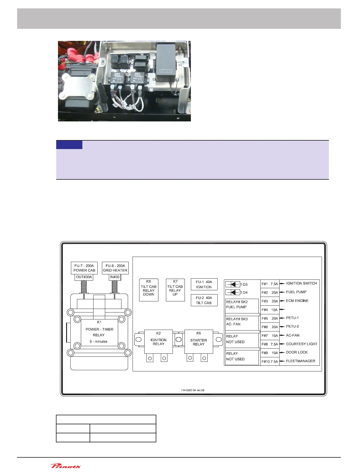 Next is a picture of the schematic on the cover of the electrical box with a list of the relays and fuses.