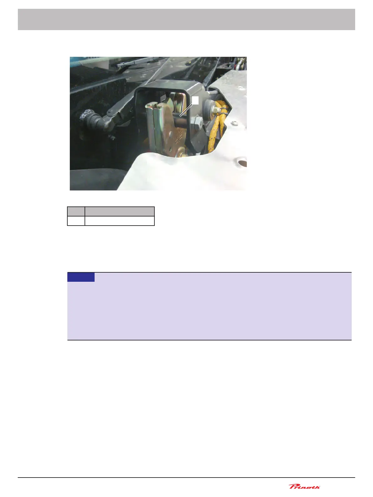 When the cab is raised for maintenance, ensure the pins at the back of the cab can rotate freely. Jam-
