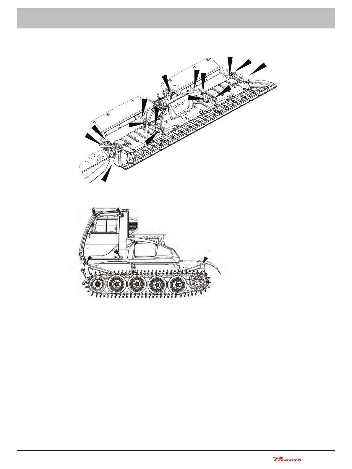 Figure 99: Lubrication points on Posiflex tiller - A: with Preminum option only - B: on each rotor (not visible on picture)