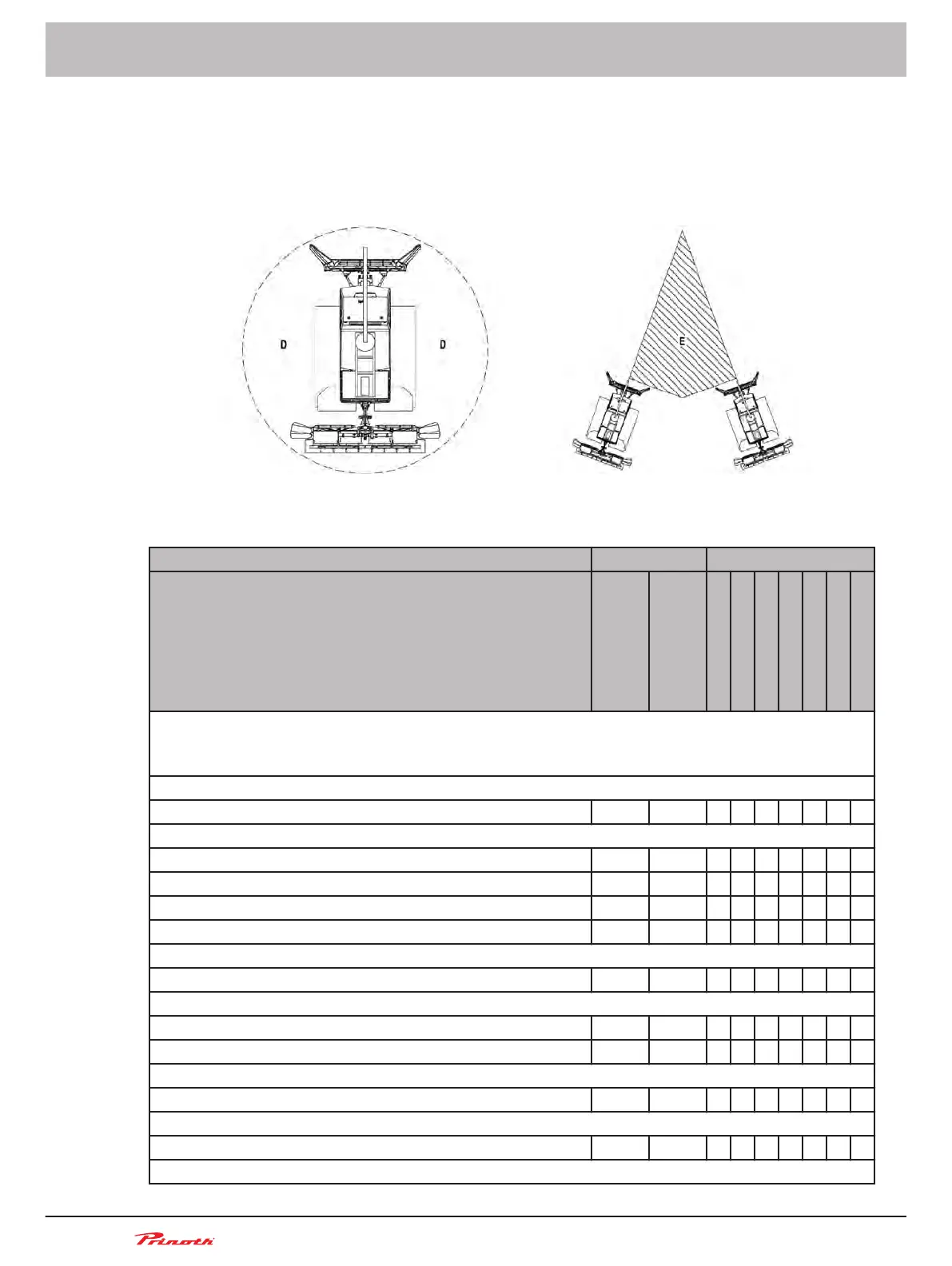 Figure 116: Danger zones when using the AUTOMATIC winch (D) and when using with anchoring points (E)