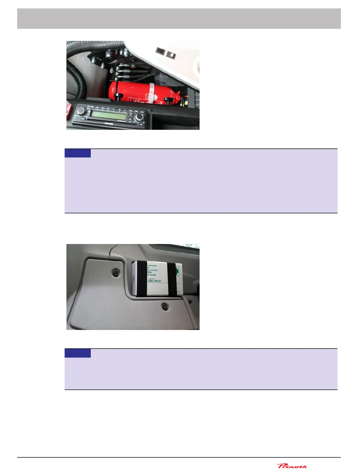 ► Ensure that the fire extinguisher is properly stored in the holder and is secured with the retaining