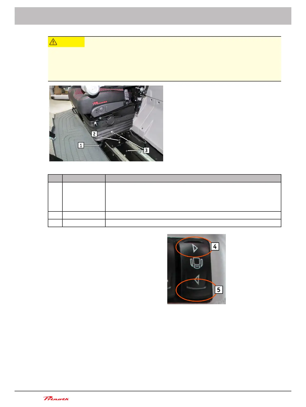 2 Locking screw To lock the seat when sliding the seat manually.