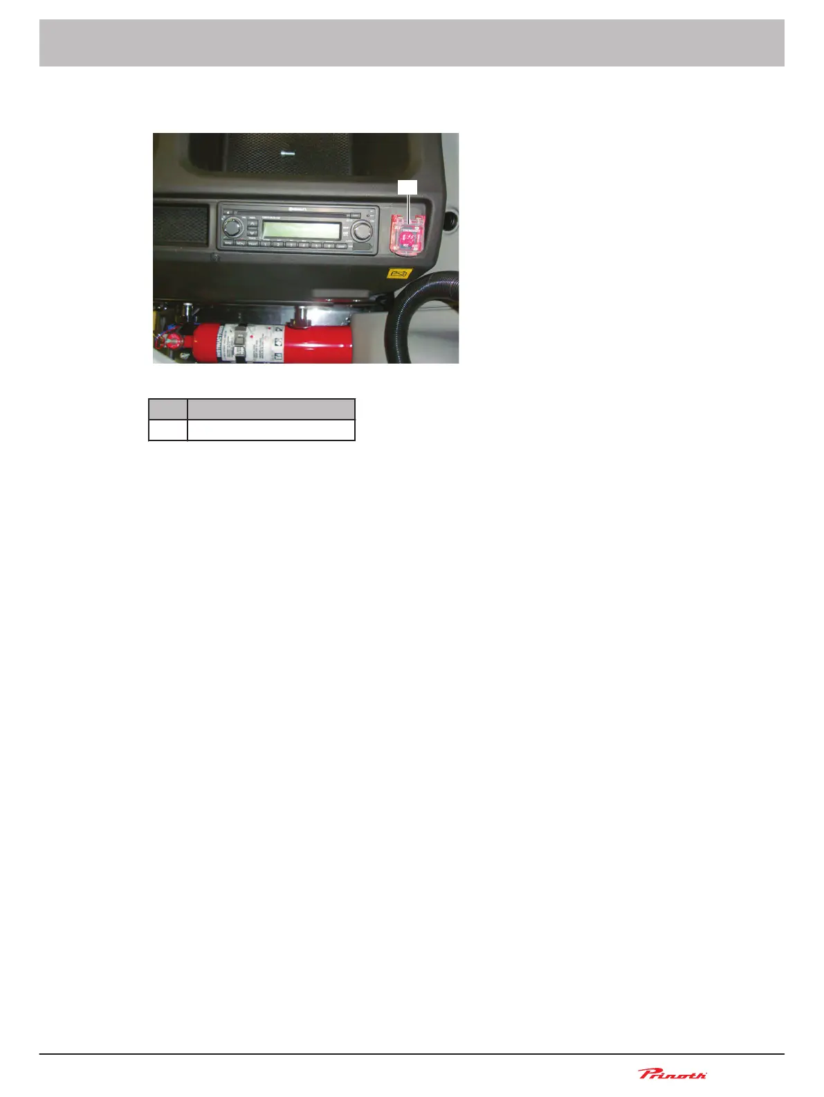 The battery emergency switch (1) is located next to the radio on the console of the passenger seat.