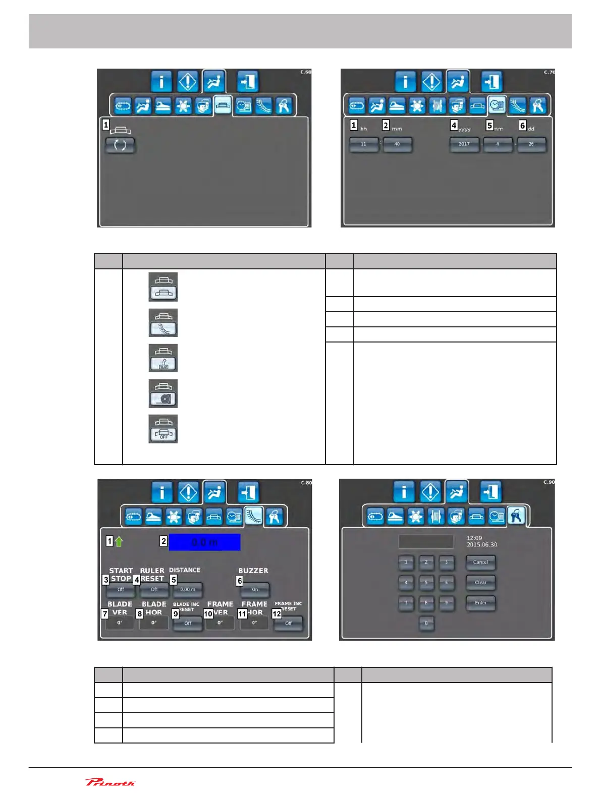 Pos. Front device selection (C.60) Pos. Setting the date and time (C.70)