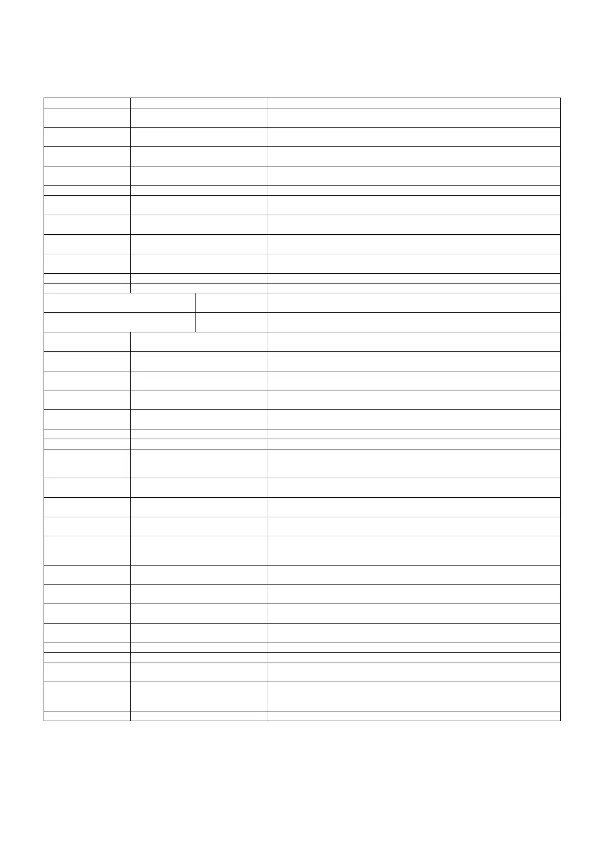 Trouble code chart