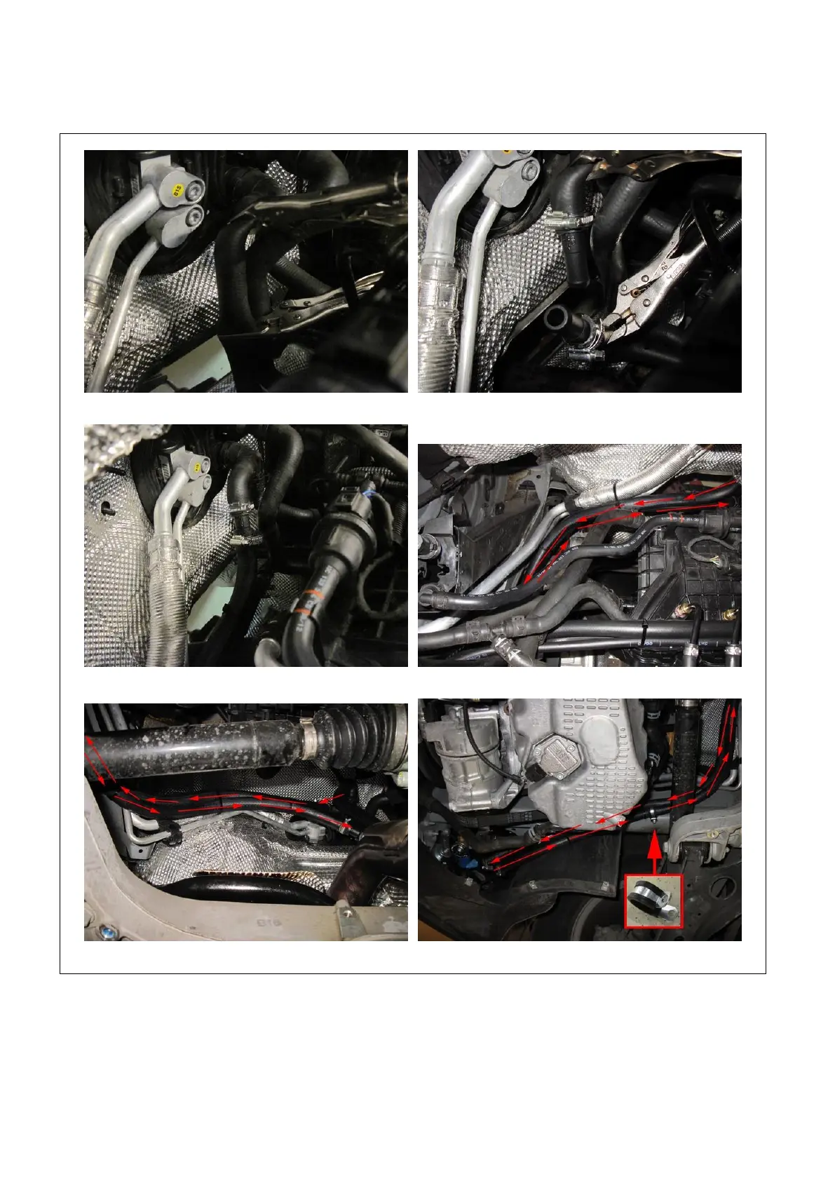 Water hose routing. Mount hoses to reducer. Fixate hoses with clamp.